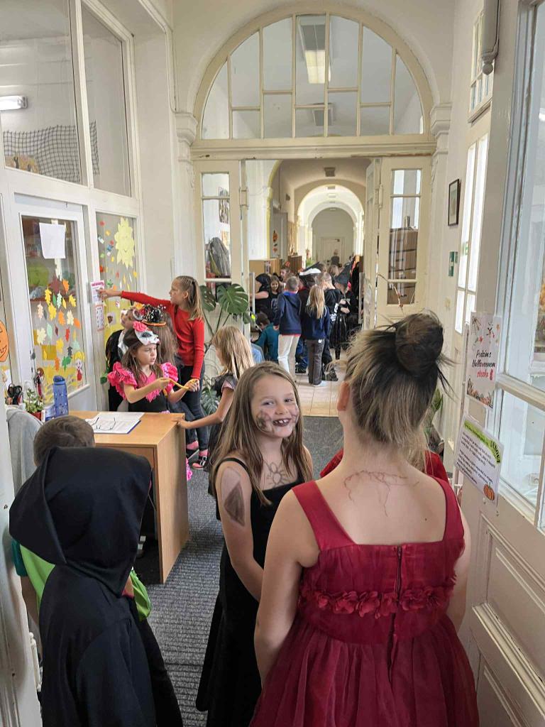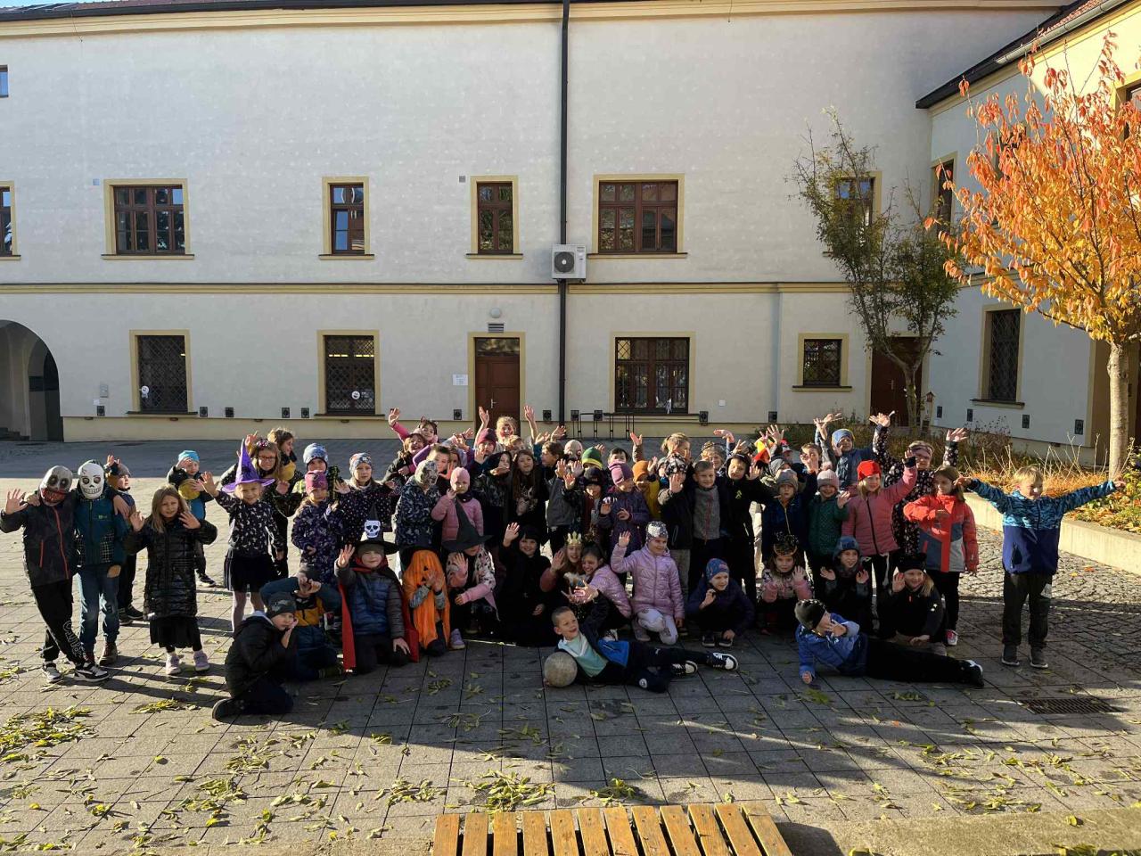 Oslavy Halloweenu na všech budovách Měšťanky.