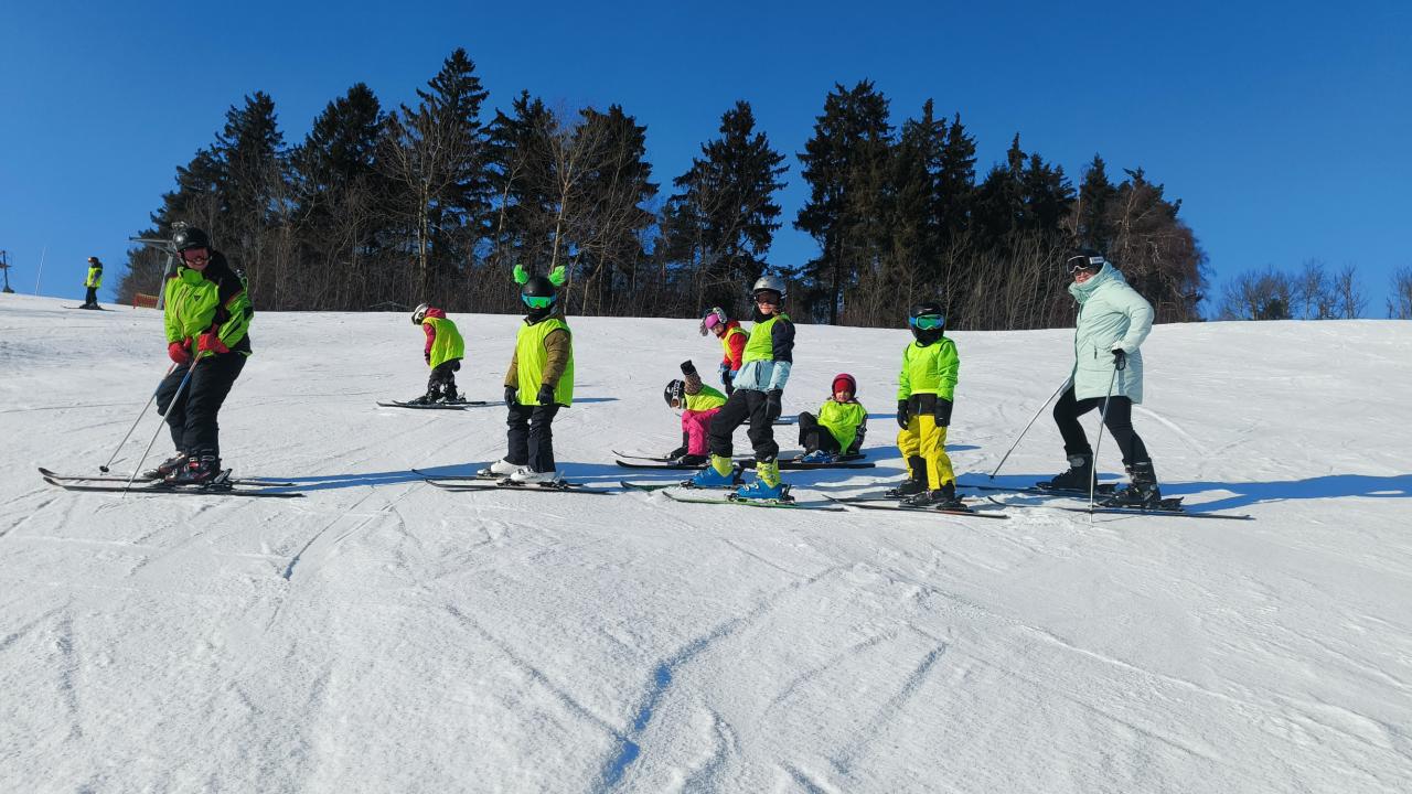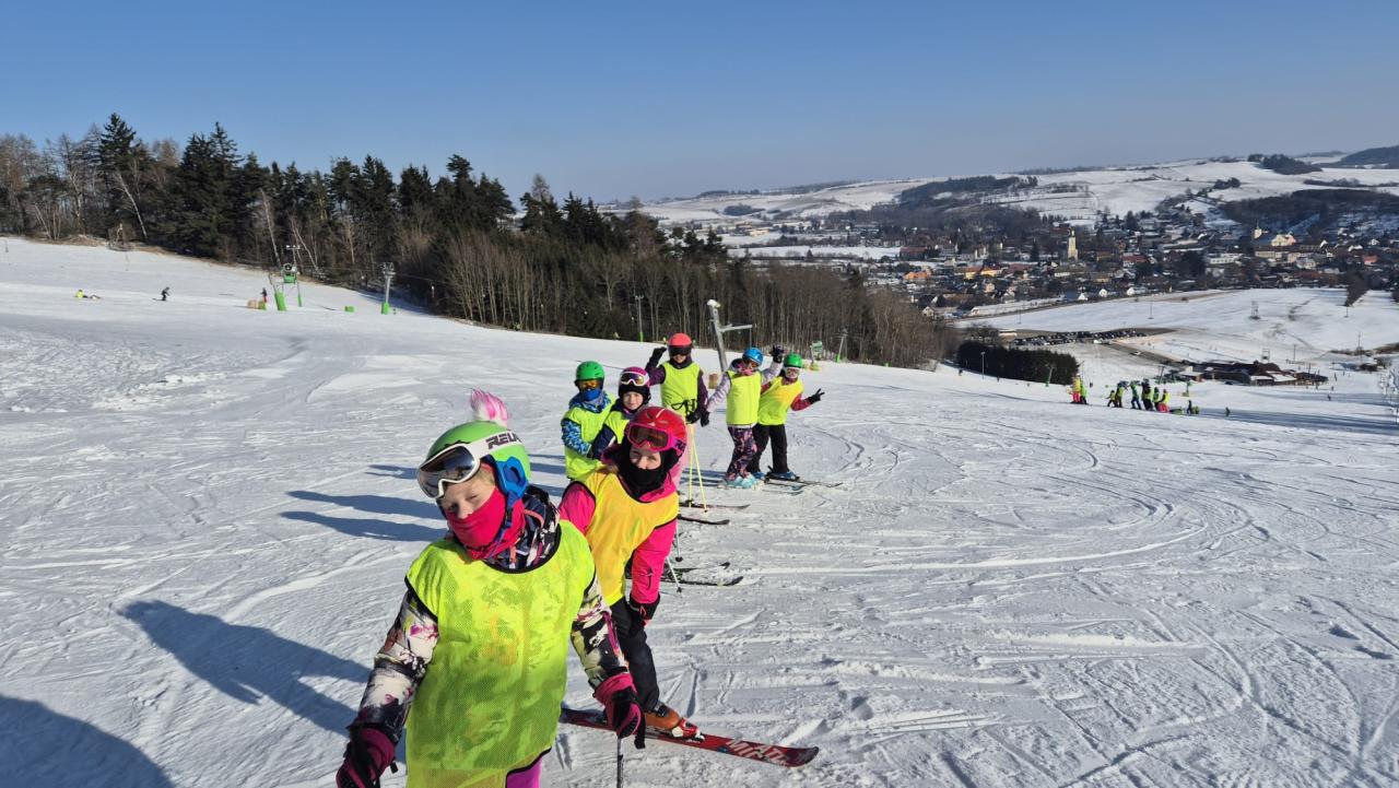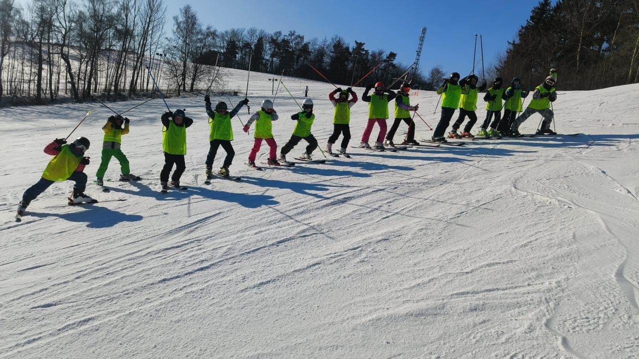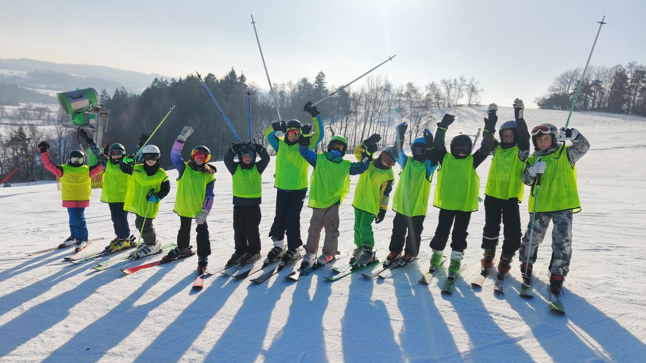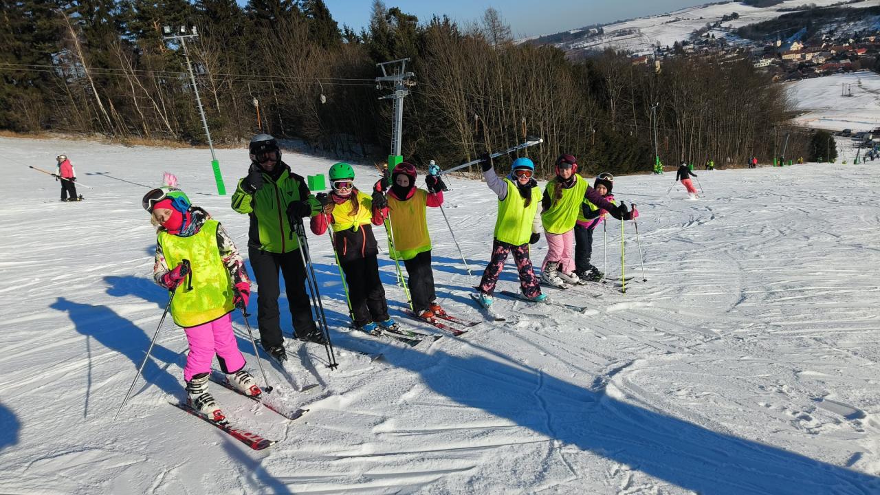 Letos se na lyžařský kurz do Olešnice vydalo 74 dětí, o které se staral tým 10 trpělivých a nadšených instruktorů.