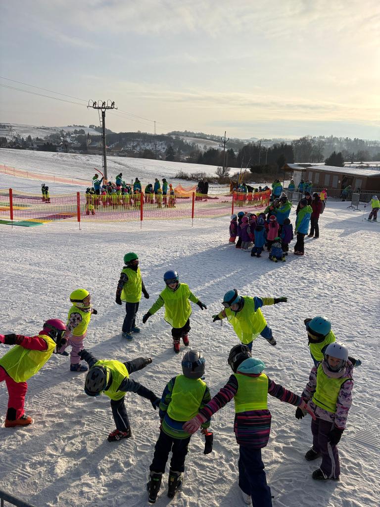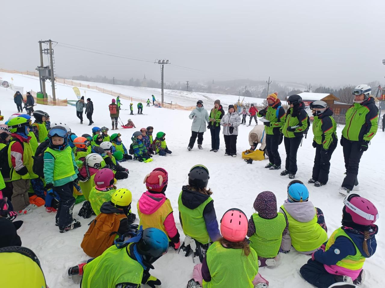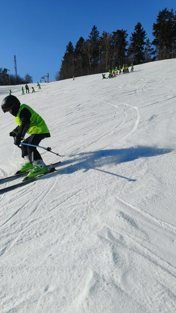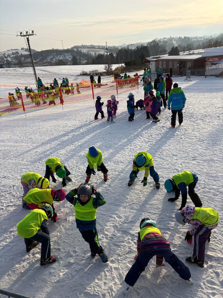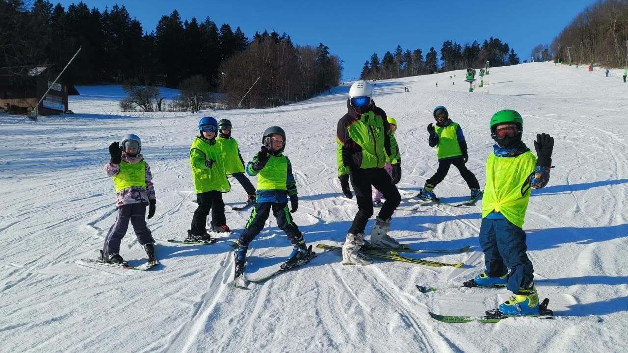 Letos se na lyžařský kurz do Olešnice vydalo 74 dětí, o které se staral tým 10 trpělivých a nadšených instruktorů.