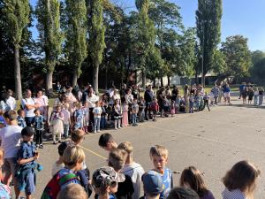 Srdečně vás zveme na zahájení školního roku 2025/2026 - Dvorecká 8:00 na nádvoří radnice - Požární 8:30 na hřišti za hasičkou (ulice Javorová) - Měšťanská 9:15 na školním hřišti