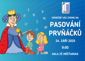 Srdečně zveme všechny rodiče a rodinné příslušníky na slavnostní pasování prvňáčků, které se uskuteční 24.září.