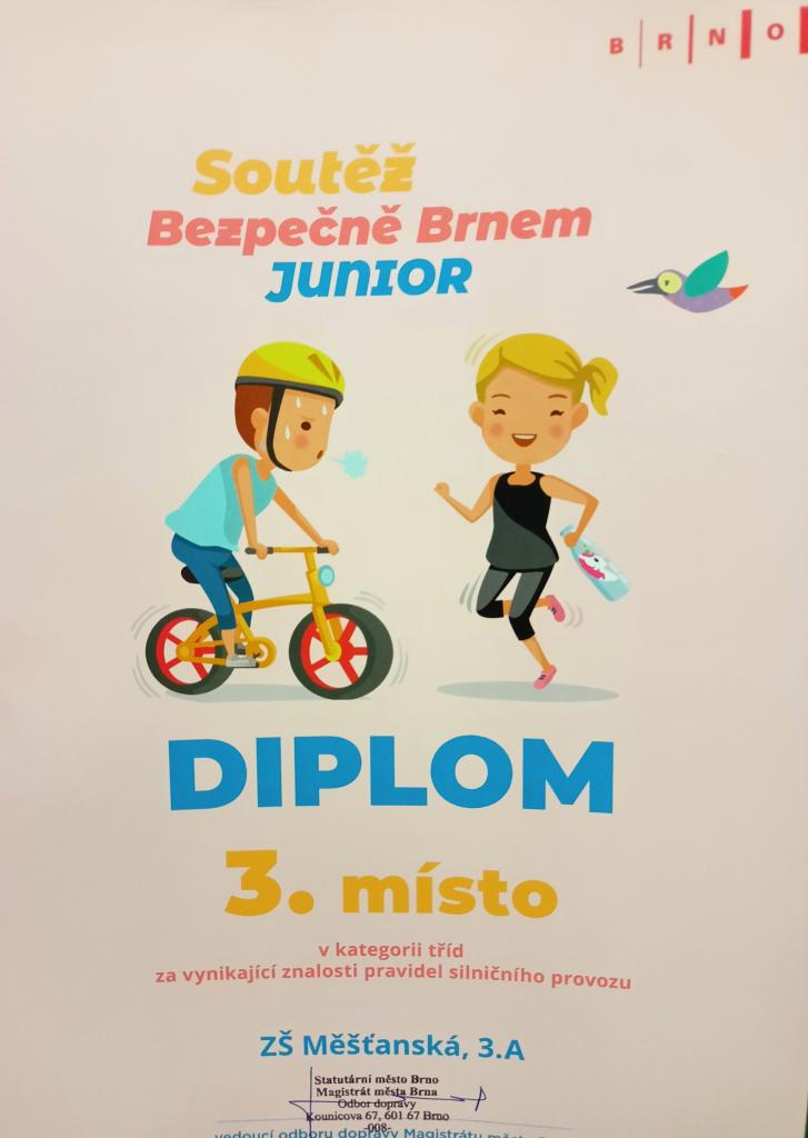 V únoru se žáci 3.A zúčastnili soutěže v dopravní výchově. Jejich pečlivá příprava po celou dobu školní docházky se jim vyplatila, dokázali uspět v konkurenci prvního stupně ze 70ti škol a umístili se na krásném 3. místě. Jako odměnu získali vstup do VIDA centra v Brně.