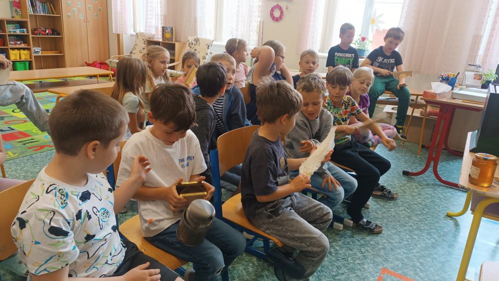 v pondělí 9.6. jsme si v družině moc užili krásné odpoledne s paní včelařkou. Ukázala nám prosklený úl, vysvětlila, jak včelky žijí, proč jsou důležité a jak pomáhají přírodě.
